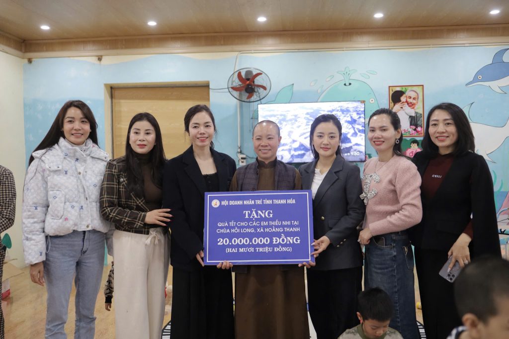 THANH HÓA – Sáng 8/2, trong không khí Tết Nguyên đán đang đến gần, Hội Doanh nhân trẻ tỉnh Thanh Hóa đã đến thăm và trao tặng 20 triệu đồng cùng 30 suất quà cho chùa Hồi Long, xã Hoằng Thanh, nơi đang cưu mang và chăm sóc 27 trẻ em mồ côi.